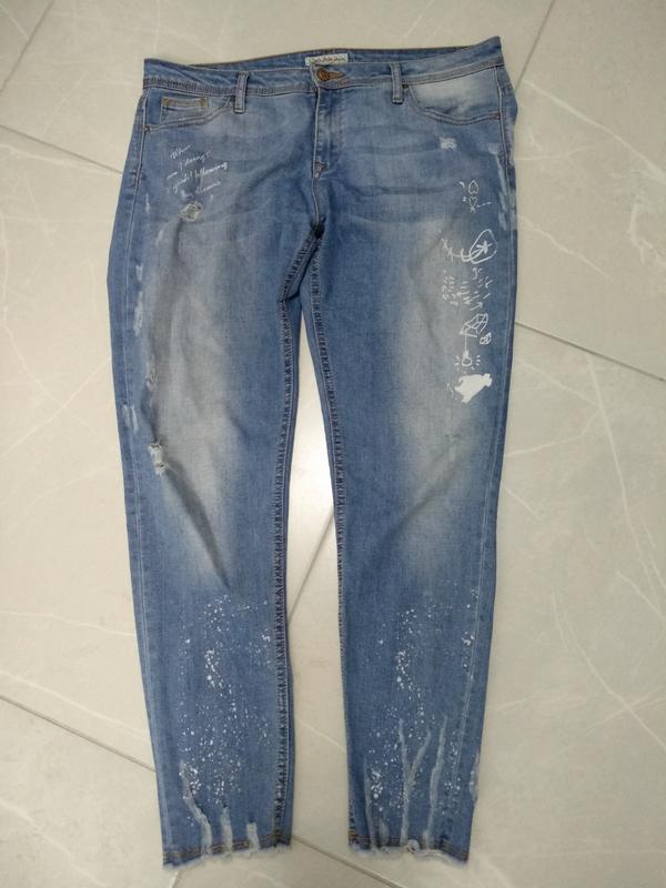 джинси з цікавим принтом потертостями та рвані Довжина приблизно 96 ширина в бедрах приблизно 54 в поясі приблизно 45 посадка 25