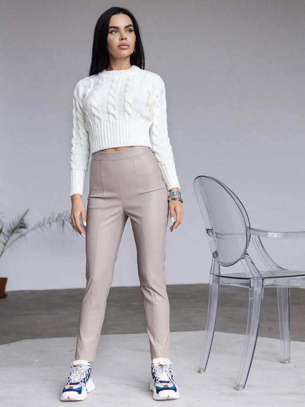 Штани, які ідеально носяться і сідають 👆 Трендові шкіряні лосини на замшевій основі (якість шкіри Zara) По центру декоративний рядок Збоку металева блискавка Позаду декоративна кокетка ▪️Тканина: еко-шкіра на замшевій основі ▪️Розмір: 42, 44, 46