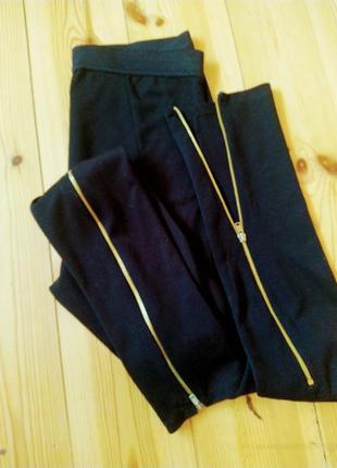 хлопковые брюки лосины известного бренда, талия на резинке, сзади змейки на штанинах золотого цвета, расстёгиваются, сзади прямые швы на попе, (пролёт с размером)