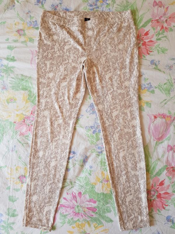 Стильні легінси, світлого бежевого кольору з принтом рептилії. Тканина штучна замша. ПОТ 43см ПОБ 53см довжина по зовнішньому шву 96см довжина по внутрішньому шву 73см Дивіться інші мої товари. Багато нового стокового одягу.