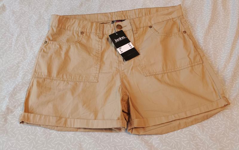 новые шорты тонкие с этикеткой песочный цвет талия 92 и меньше низ подворот