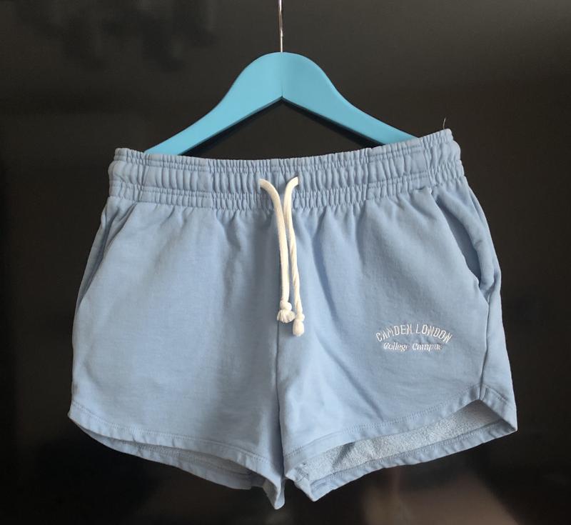 Нові. Бірки зрізані. 100% Хлопок. Красивий голубий колір, як на моделі. Тканина зовні гладка, зсередини- махра. Кишені. Плотна широка резинка, не сильно тягнеться.. На розмір С ідеально, для М з тонкою талією. ПО пояса 33 см, тягнеться не сильно (і при натяженні буде тиснути, буде не комфортно). Довжина по боковому шву 28см, по центру сзаду- 32 см ПОБ 47 см- до 50 см