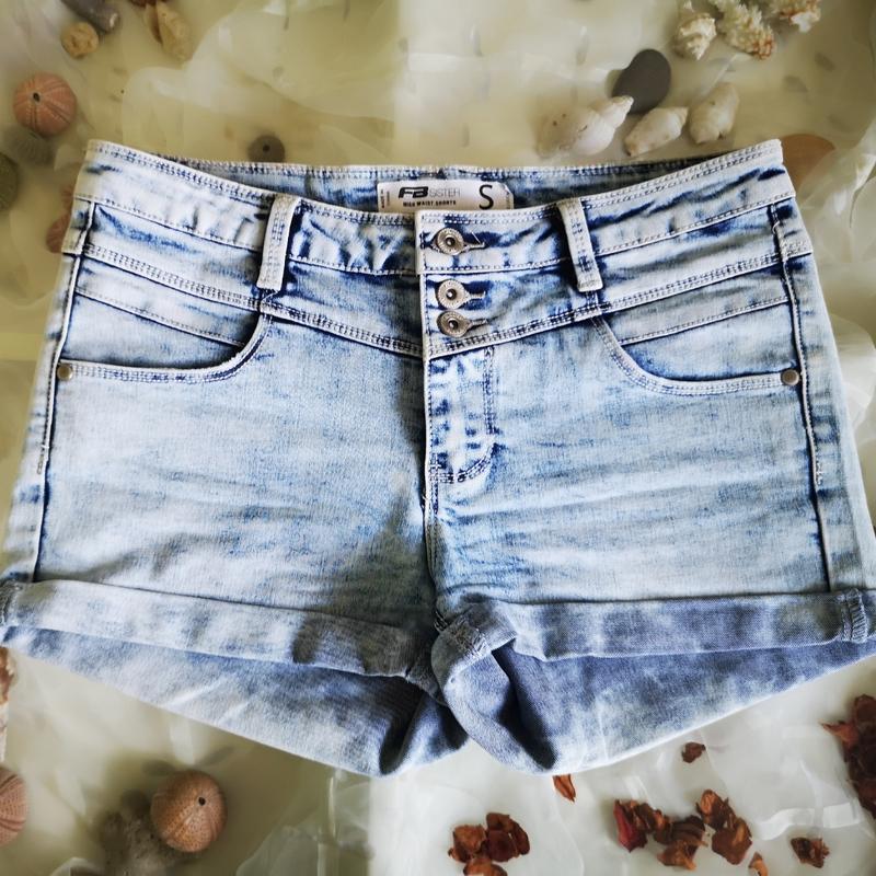 Шорти джинсові. Колір світлий, не застіраний, виглядають як нові. ПО поясу 39,5см. ПО бедер 45. Висота з боку 26см. ПО в ножці 27см. Тягнуться, але не сильно. Підходять на розмір S, M.