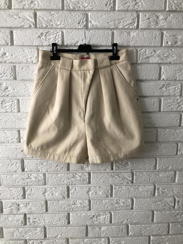 Шорти на високій посадці із теплої тканини схожої на футболу, молочного кольору Пот - 39, поб - 48, довжина - 46