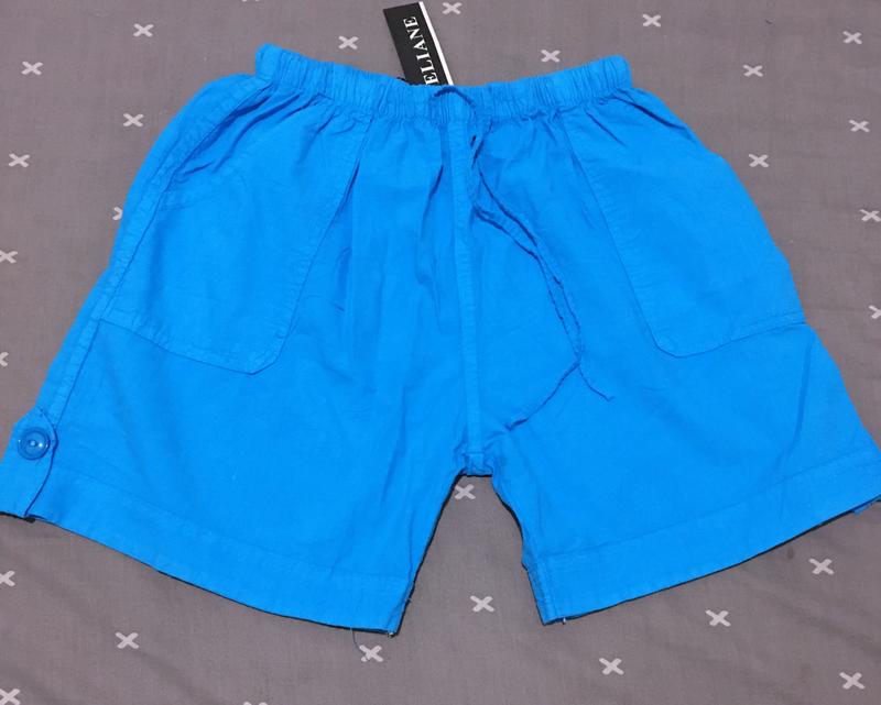 Шорти Eliane - 100% Бавовна (якість тканини відмінна - тримає форму, на спеку) Розмір L Пояс на резинці тягнеться 29-46 см Поб 56 см Посадка 27,5/33 см Довжина 38 см збоку, 13 см усередині Ширина брючини 28 см Три кишені Нові Без торгу