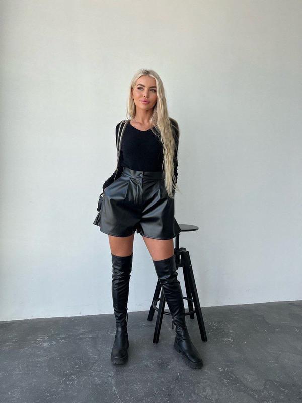 Жіночі трендові шорти арт. rkot. 542 Розміри: 42-44; 46-48 Тканина: еко шкіра на флісі, приємна на дотик Колір: чорний Шорти застібаються на блискавку та гудзик. Відмінна якість.