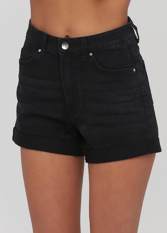 Чорні шорти з манжетами H&M. Made in Bangladesh. 78% бавовна, 21% поліестер, 1% еластан. Розмір 36, підійдуть на S-M. Стан ідеальний. В поясі 36 см, довжина 28 см, бедра 46 см, посадка спереді 24 см.