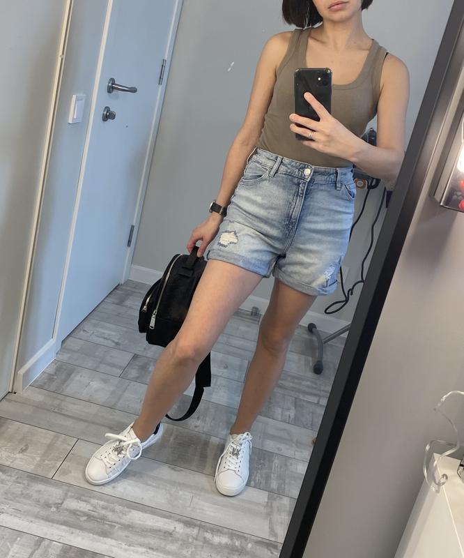 Розмір підлітковий (12-13 років, зріст 158), але добре і на дорослу дівчину на xxs-xs. Дуже гарний стан, без дефектів. Зручні, на поясі утяжка. Тканина 99% джинс, 1 % еластан, трохи тягнеться. Виміри: довжина збоку 35, ПОС 44. На фото вдягнуті на зріст 152, 82-65-87.