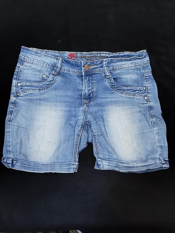 Минимальный заказ у продавца на 100 грн. Джинсовые шорты R. Marks jeans в хорошем состоянии, есть малозаметные пятнышки, выстировать не пробовала. Полуобхват по поясу немного тянется 40-45 см, высота посадки 20 см, длина по внутреннему шву штанины 15 см, длина по внешнему шву штанины 37 см, полуобхват бедер 48 см. Замеры сделаны в спокойном, нерастянутом состоянии. Ткань немного тянется. Модель 1707