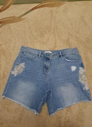 Стильные джинсовые шортики с вышивкой р.14 (42) Замеры длина 39 об 52 пояс 45 посадка 28
