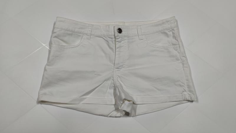 Белые шорты Divided от H&M. Состояние идеальное. Размер по бирке EUR 40. Ширинка на молнии. Немного тянуться. Замеры: ПОТ - 39 см ПОБ - 49 см По боковому шву - 28 см Посадка по переднему шву - 24 см Посадка по заднему шву - 33 см