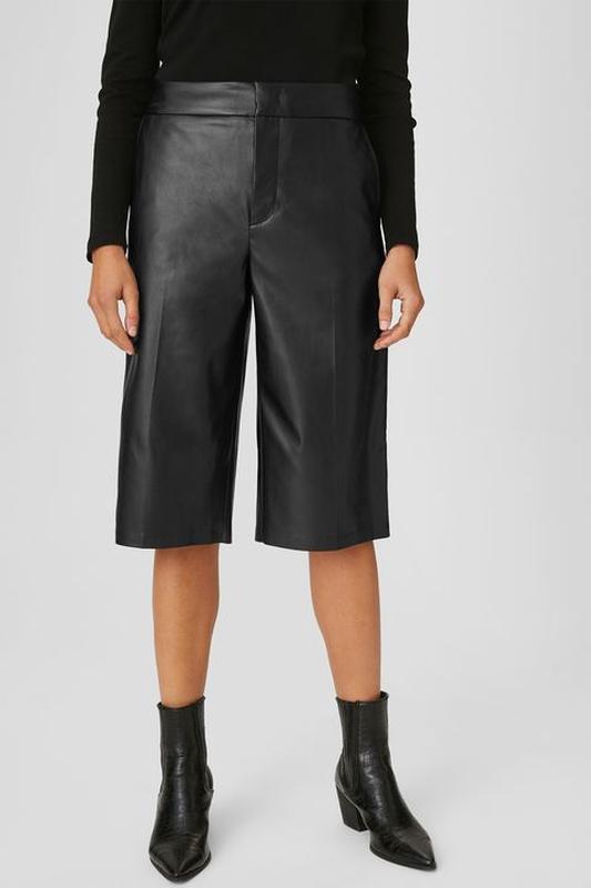 Между шортами-бермудами и брюками-кюлотами из искусственной кожи эти брюки C&A из Premium коллекции, прекрасно сочетаются как с рубашкой и ботинками / ботильонами, так и с кроссовками и джемпером. Два размера в наличии - по бирочке 34 и 38, но лучше смотрите мерочки и решайте сами) EUR 34 По поясу 37 см ПОБ 49 см Ширина штанинки в бедре 32.5 см и 27.5 см по низу штанины Посадка перед/зад - 29/39 см Посадка очень комфортная ДИ/Шаговый - 66 см/39 см EUR 38 По поясу 41 см ПОБ 53 см Ширина штанинки в бедре 34 см и 28.5 см по низу штанины Посадка перед/зад - 29.5/40 см Посадка очень комфортная ДИ/Шаговый - 67.5 см/39 см Страна-производитель товара Германия