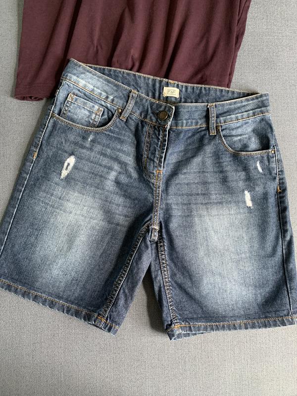 Шорты в отличном состоянии, джинс качественный. Длина по боковому шву 43,5, пот 39, поб 52, посадка 23/31.