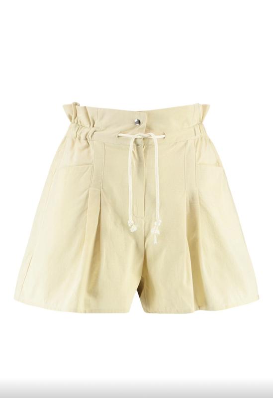 Легкие летние шорты. Нежный бежевый цвет в поясе шнурок, накладные карманы. BooHoo 100% полиэстер Вказано eu 42 наш 50 полуобхват пояса в спокойном состоянии 44 см тянется до 55 см, поб 63 см, длина 47 см 250 грн