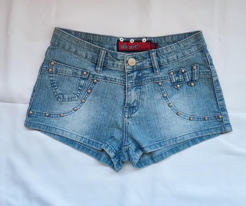 Джинсовые шорты. Размер 26. Длина по боковому шву 22см Полуобхват талии 32,5см Полуобхват бедер 44см