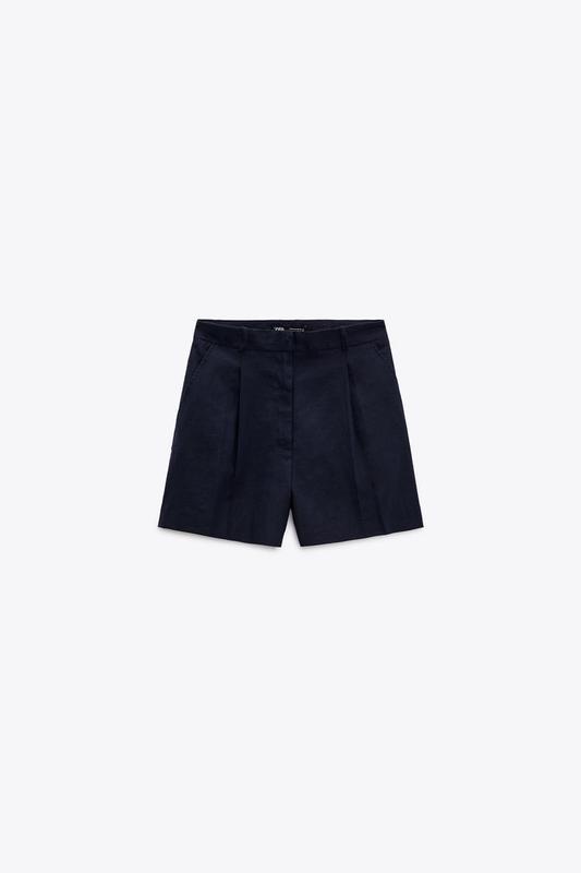 ZARA - Бермуды из смесовой льняной ткани с высокой посадкой. Застегиваются на молнию, внутреннюю пуговицу и металлический крючок спереди. Защипы и карманы спереди, имитация кармана с клапаном сзади. - XS-XL - 1 300 грн • Избавляем из Европы • Все заказывают подзаказку • Возвращение и обмена пока нет
