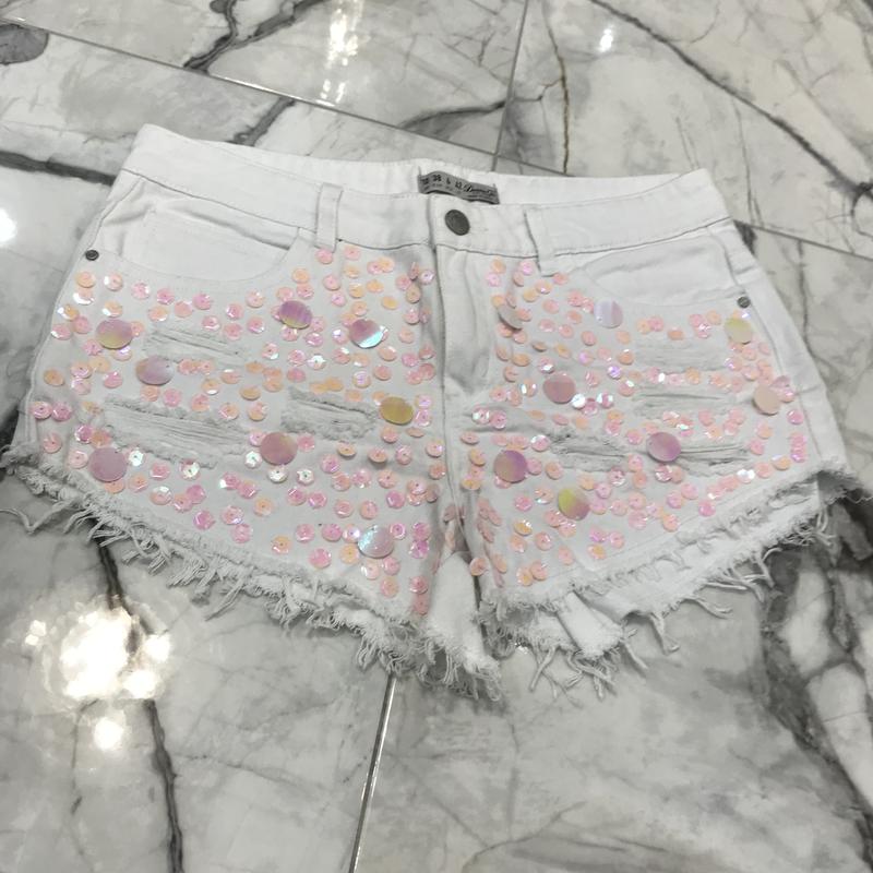 Фирменные шорты со стразами, Длина по боку 24 см Посадка 28 см ПОБ 40 см