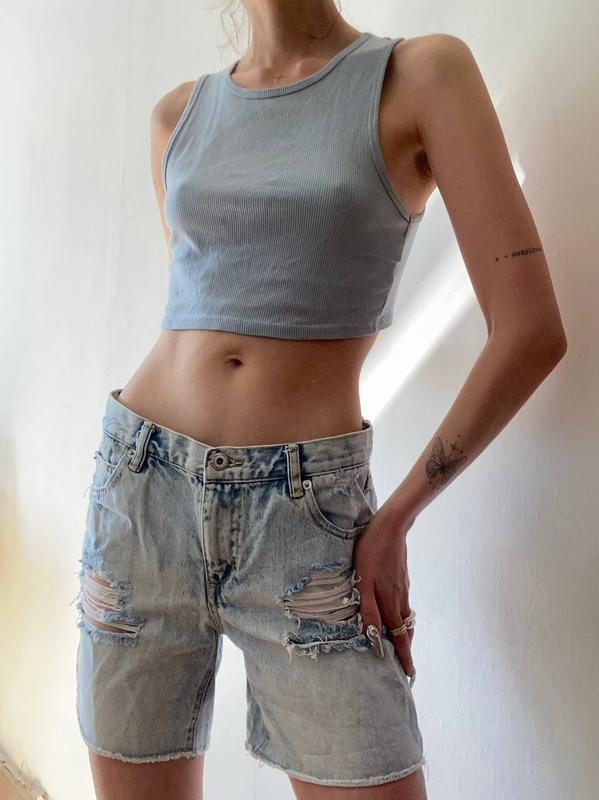 Стильні джинсові шорти з дірками на літо. Мають кармани. Стан ідеальний, не носила. Можна підгорнути і зробити коротшими.