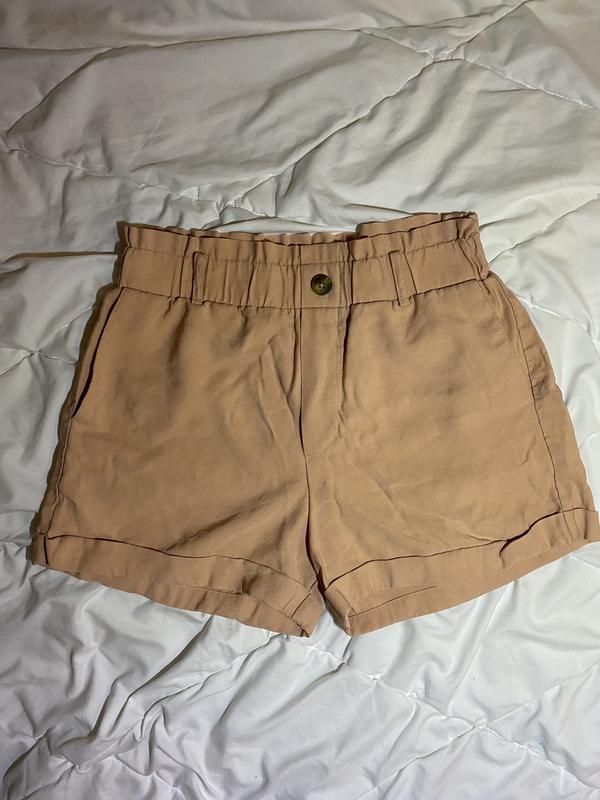 Шорты от Pull & Bear. В хорошем состоянии. Тканина легка. Персикового цвета. На резинке. Пуговица для красоты, не имеет какого-то функционала. Есть карманы. Размер М. Длина шорт - 35 см. Объем бедер - 92 см. Пояс - 72 см.