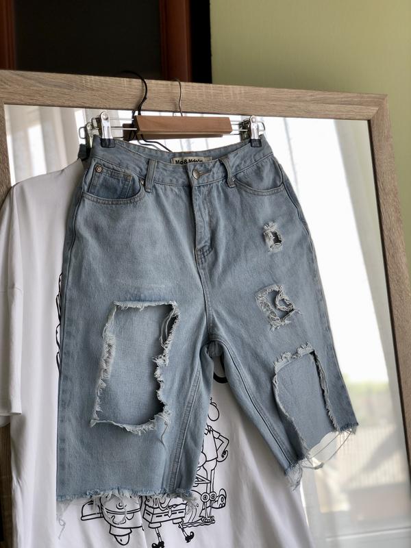 Бермуди з декоративними рваностями розмір 10 С М вільного фасону пояс 35 см поб 49 см довж 56 см