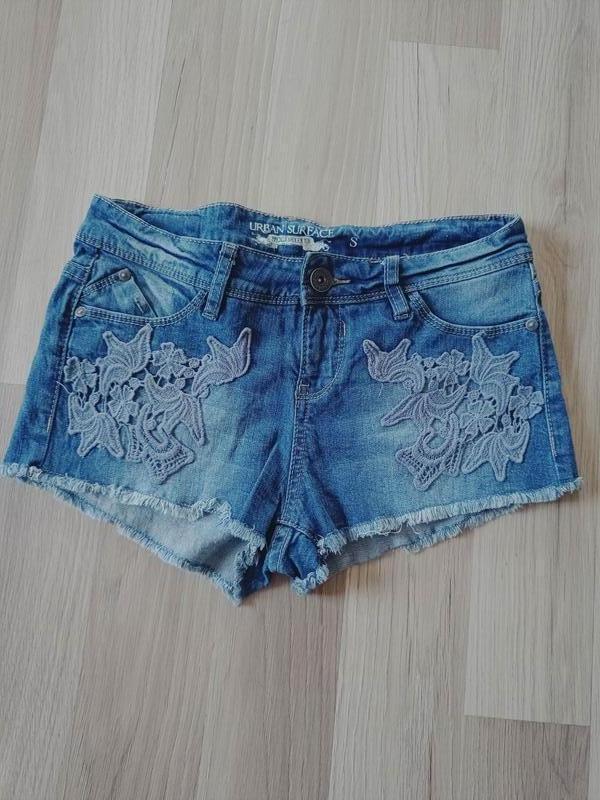 Шорты женские джинсовые, новые, размер S. Длина- 24 см, ПОТ- 36 см, посадка спереди- 21 см, сзади- 33 см.