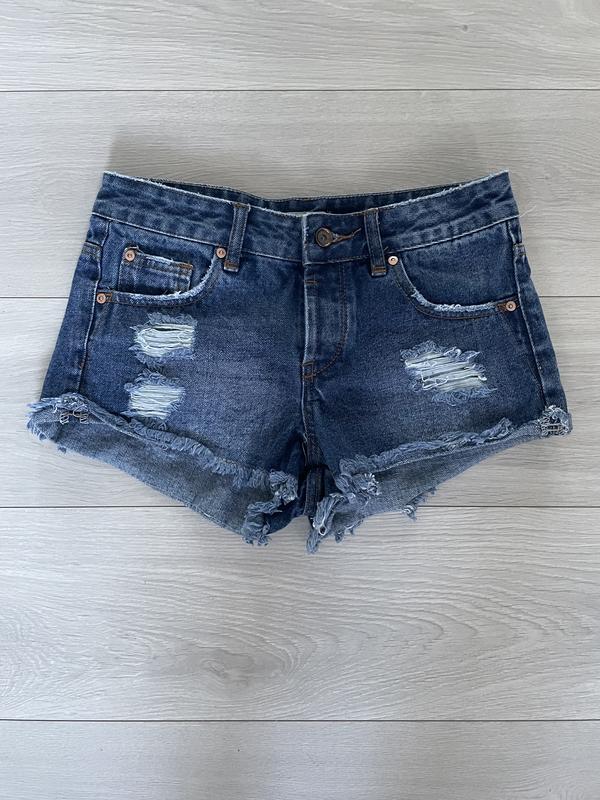 Джинсові шорти Pull&Bear розмір S. Розмір вказаний 32 (більшомірять) за мірками йде на 36/S. На фото стегна 94 см. ПО талія 37 см. ПО стегна 48 см. Посадка спереду 23 см, ззаду 29 см. Довжина спереду 24 см, ззаду 31 см. Склад: бавовна 100%.