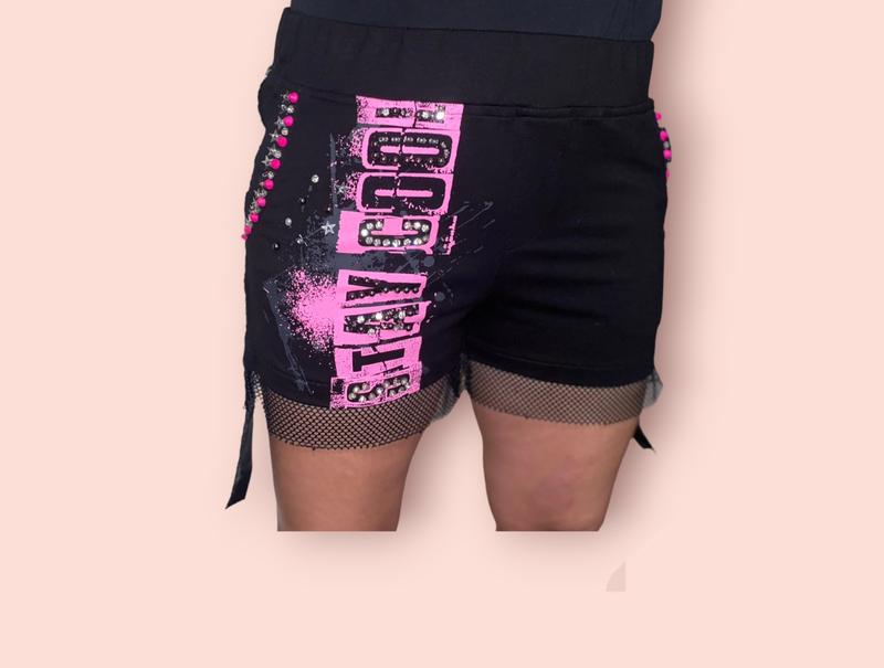 Черно-розовый трикотаж (плотный). Цена 370 грн Размер XL: Талия 40 см (резинка тянется до 53 см) Бедра 47 см Длина шорт ЗД 32 см + 3 см кружево = 35см Посадка (Зад) 32 см. Смотрите мое другое объявления (есть другие шорты)