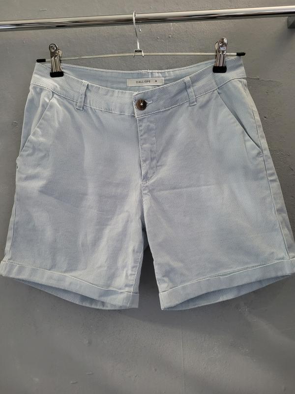Коттоновые, женские голубые шорты, в мелкую полоску, состояние новый, размер С-М, замеры по запросу