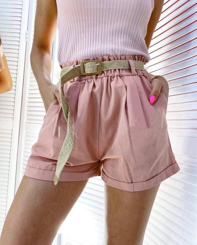 Шорти Модель: 5725 Р Фабричный Китай Цена: 390 грн. Размер: Универсальный (42-46) Тканина: бавовна (пояс у комплекті) Цвет: желтый, сирень, пудра, коричневый Замеры: Длина 36 см Пояс 58-80 см ОС до 96 см рин1553