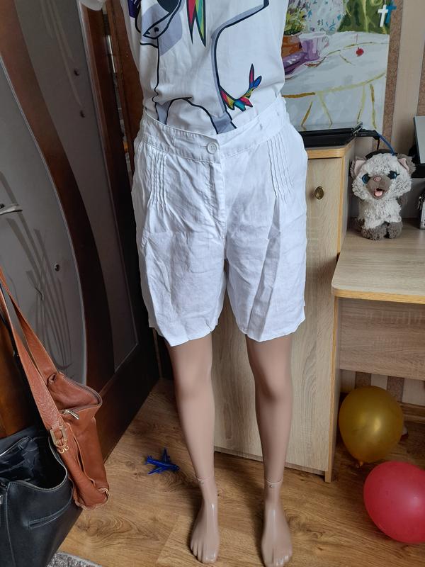белые легкие льняные шорты ПОТ 41 см ПОБ 50 см длина 45 см посадка спереди 23 см, сзади 44 см
