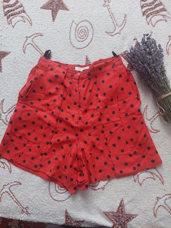красные шорты в черный горошек с карманами. состояние идеальное. размер 38.пляс-38см, длин-42см. завитая посадка. очень классные.