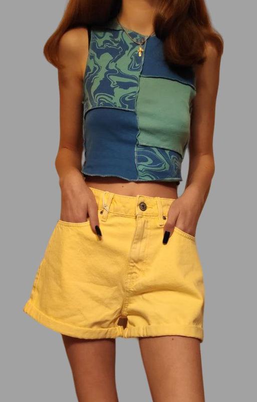 Удобные яркие желтые шортики Jennyfer. Размер 40, может быть на 42. (талия 66 см, бедра 86 см, если мерить саму вещь). Состав: 100% коттон.