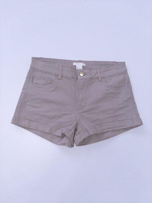 Шорты бежевого цвета в коллекцию спереди карманы сзади и спереди. Застегивается на молнию и пуговицу. Состав: 98 коттон, 2 эластан. Сделано в Бангладеш. Замеры: длина 31, пояс 36, до паха 26, бедра 44