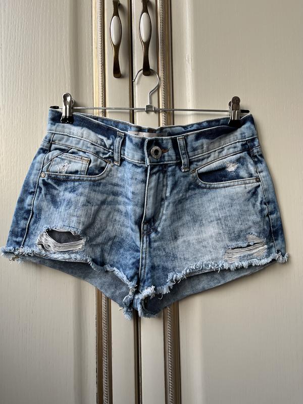 Короткие джинсовые шорты в идеальном состоянии Ширина талии 40 см Длина внешнего шва 26 см Длина внутреннего шва 3 см Ширина стегон 46 см