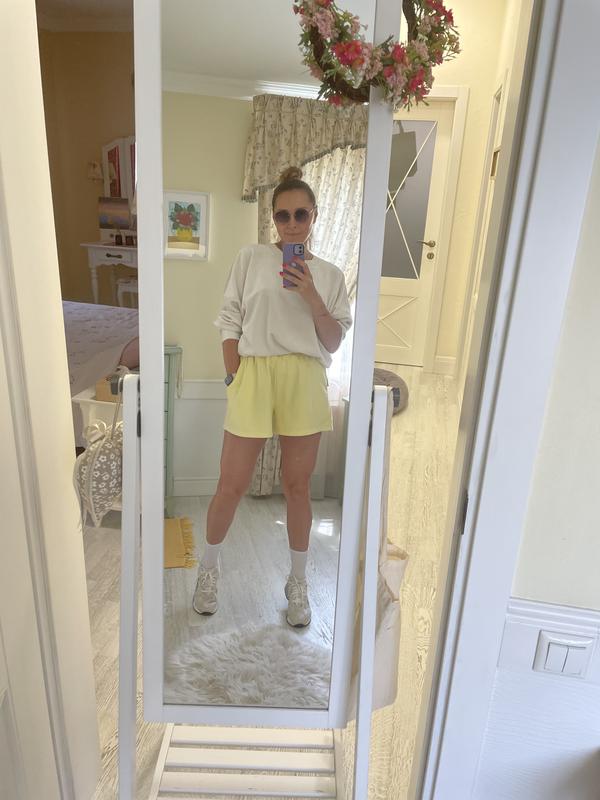 Шорты украинского бренда O. Street в цвете лимон. 100% cotton. Отлично тянутся. Имеют карманы Замеры: В талии-75( тянутся до 100 и более) Длина по внешнему шву-35 Длина по внутреннему шву-9 Высокая посадка Стан - идеальный