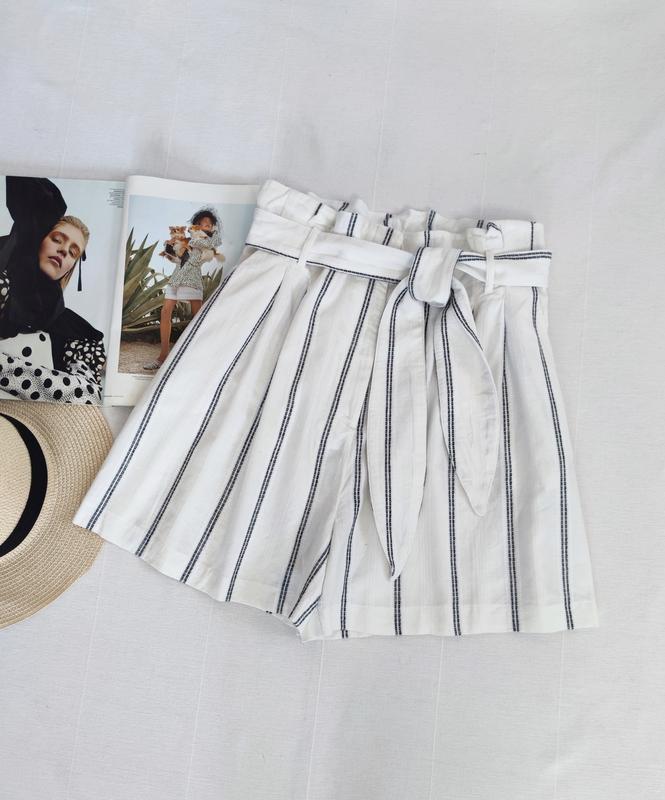 🌿шорти в смужку H&M з поясом і бічними кишенями Розмір:14 Заміри: ширина поясу 40 см, ПО бедер 60 см, довжина 46 см