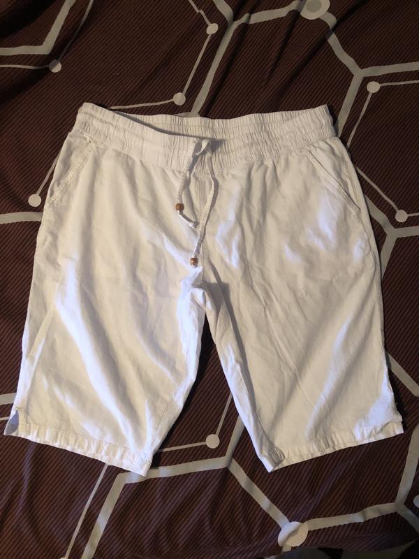 Белоснежные шорты,ткань приятная к телу не жаркая на бедра 116 можно и больше) Пот резинка в не растянутом 47 поб 63 длина 56