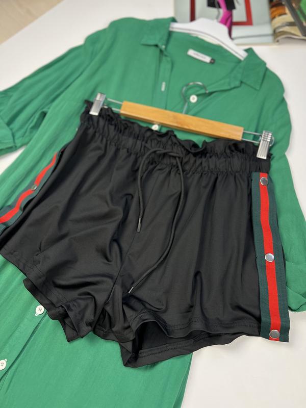 ▪️размер по набору L ▪️состояние : НОВЫЕ без бумажной этикетки ▪️талия на резинке ▪️ширина в талии 37см, тянется до 60см ▪️в стиле Gucci ▪️ширина по бедрам 62см ▪️посадка переда 37см ▪️длина по боковому шву 34см