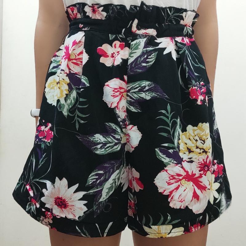 Шортики, принт цветочка,размер по бирочке l,але сядет и на m,на s (быта как на фото), резиночке(ром в талии будут хороши), спереди на огурелье и замочек, высокая посадка, по бокам есть небольшие кармашки.