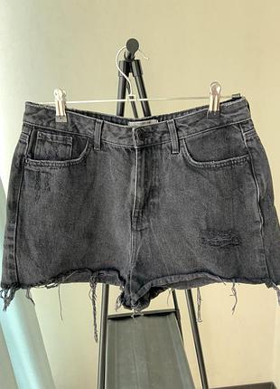 Короткі джинсові шорти чорного кольору. Від бренду New Look. Виготовлено в Туреччині. Не тягнуться (100% бавовна), цупкі. Розмір: 12 (UK) 40 (EU) 8 (USA) Заміри: Півобхват поясу - 37,5 см Півобхват стегон - 52,5 см. Висота посадки - 30 см.