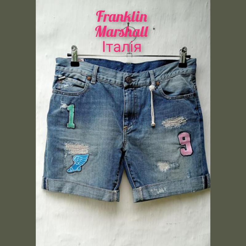 Kрутые голубые джинсовые шорты с аппликацией franklin marshall 🩵