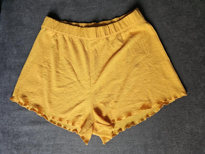 Очень красивого насыщенного желтого цвета шорты h&m. Высокая посадка Длина по внешнему шву - 32 см Пот (по ремнке) 33,5 Посадка спереди 30. Посадка сзаду 42 см Размер s, но это М