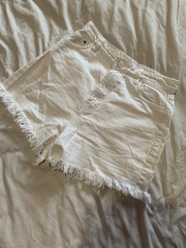 Короткие шорты белого цвета с необработанным краем на 34 были оверсайз