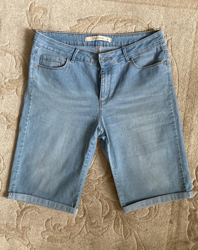 Светло-синие шорты с длинной штаниной. Средняя посадка.