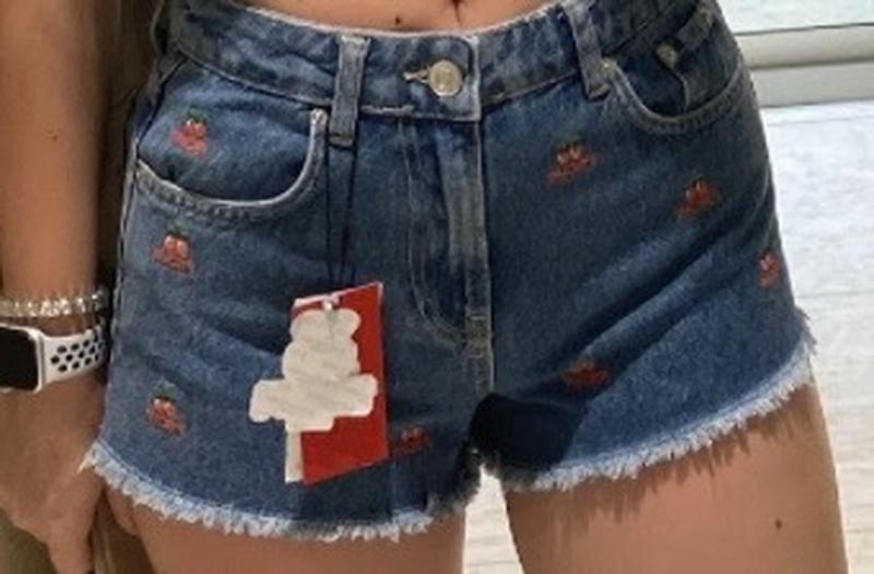 Женские джинсовые шорты с вишенками, размер 34, одевала пару раз, в идеальном состоянии. Без ценника