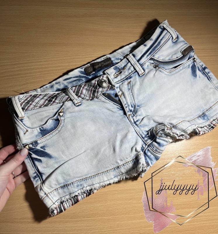 Шорти світло блакитні , стан хороший , низька посадка , підійдуть на розмір XS-S , на параметри : бедра до 88 см.
