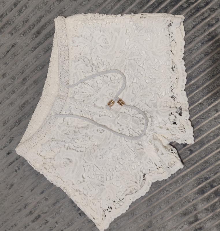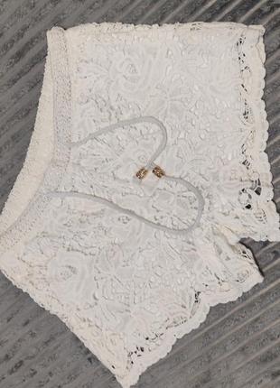 Классные кружевные шорты, которые можно сочетать во многих стилях. Удобные, красиво садятся по фигуре. Не жаркі. Верх на резинке +шнурок Имеют подкладку размер С (42) полномерные. Стегна 44 см Талия 32/40 см Длина 28/29 см