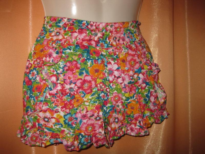 Удобные на резинке цветочные розовые яркие короткие шорты юбка next км1929