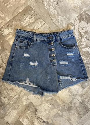Джинсовые юбка шорты трапеция Отлично садятся по фигуре Размер 26-(s)