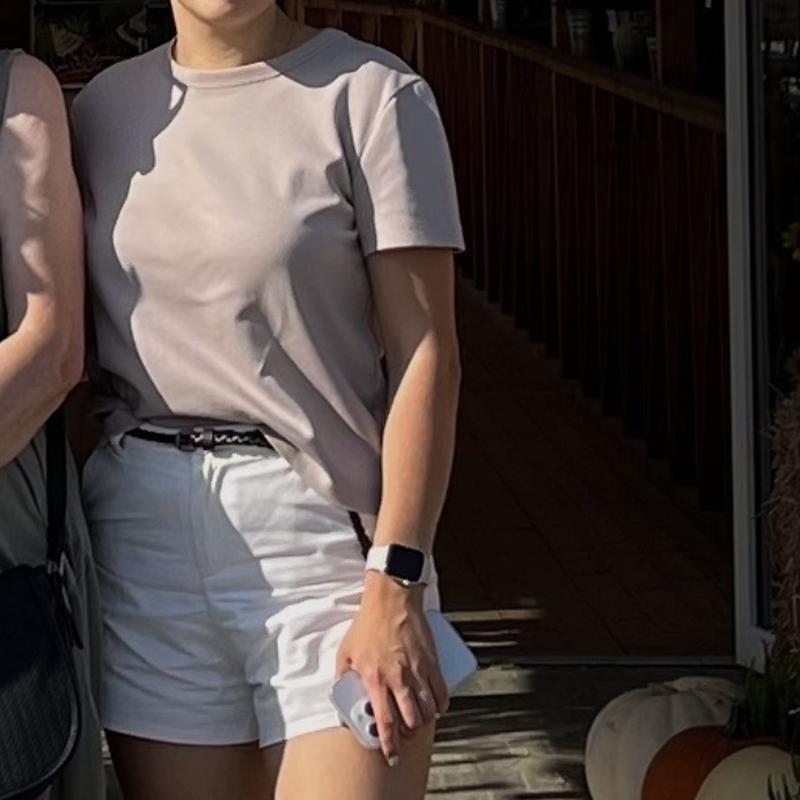 Белые шорты, они не джинсовые, более коттоновые, который состав не знаю, всегда берку отрезанию ((в комплекте есть ремешок, как на первом фото.
